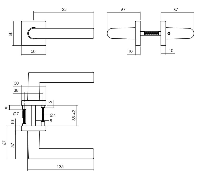 Deurklink Broome op vierkante rozet is gemaakt van aluminium en uitgevoerd in de populaire kleur mat zwart. De rozet is voorzien van nokken, waardoor deze beter op zijn plek gehouden wordt. De deurklink is geschikt voor deurdiktes van 38 – 42 mm en wordt geleverd per stuk, inclusief bevestigingsmateriaal.