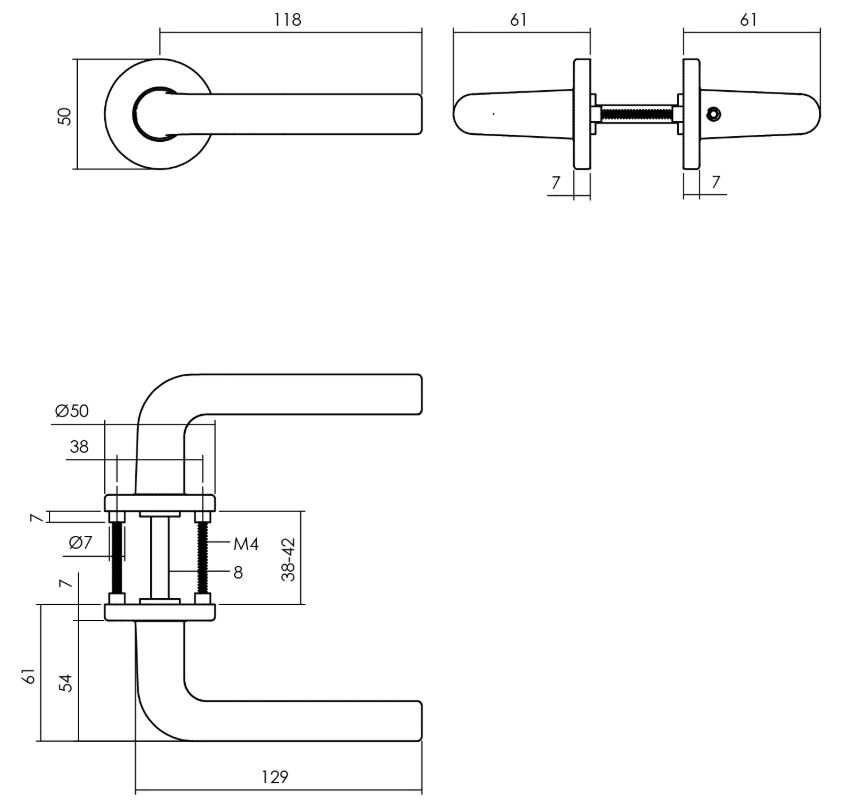 Intersteel enkele deurklink Derby op rozet ø50×7 mm + 7mm nokken zwart