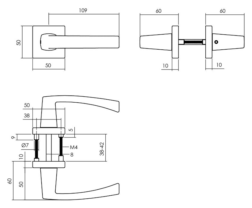 Intersteel enkele deurklink Moora op rozet 50x50x10 mm + 7mm nokken zwart