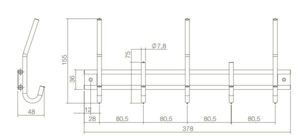Kapstokhaken zijn handig voor het ophangen van onder andere jassen. met deze roestvast stalen kapstok met vijf haken heeft u de mogelijkheid om aan de bovenzijde een muts op te hangen en aan de onderzijde een jas. Door het gebruik van rvs heeft deze kapstok een lange levensduur. Dit product heeft een breedte van 378 mm en is 155 mm hoog. Montage aan de wand is eenvoudig met het meegeleverde bevestigingsmateriaal.