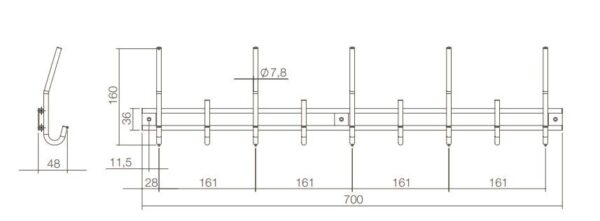 Kapstokhaken zijn handig voor het ophangen van onder andere jassen. met deze roestvast stalen kapstok met negen haken heeft u de mogelijkheid om aan de bovenzijde een muts op te hangen en aan de onderzijde een jas. Door het gebruik van rvs heeft deze kapstok een lange levensduur. Dit product heeft een breedte van 700 mm en is 160 mm hoog. Montage aan de wand is eenvoudig met het meegeleverde bevestigingsmateriaal.