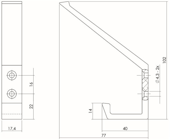 Intersteel Kapstokhaak met verticale schroefgaten aluminium