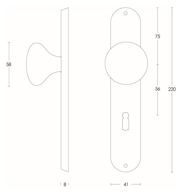Deze knop op lang schild is uitgevoerd in roestvast staal en naderhand geborsteld, waardoor het een matte uitstraling krijgt. Deze knop op schild met een sleutelgat maat van 56 mm wordt per stuk geleverd. Het voordeel van knoppen op schild is dat ze vaak de gaten afdekken die voorheen in de deur zaten.