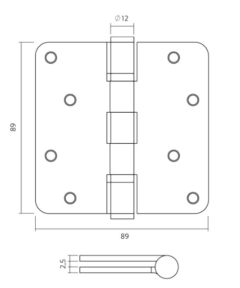 Intersteel kogellagerscharnier 89×89 mm ronde hoek PVD antraciet