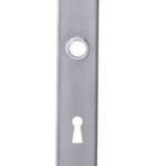 Dit deurschild is 220 mm hoog 41 mm breed en 8 mm dik. Het krukgat van dit deurschild zit 75 mm vanaf de bovenzijde. Deurschild is voorzien van sleutelgat, de h.o.h. afstand tussen sleutelgat en deurklink is 56 mm.