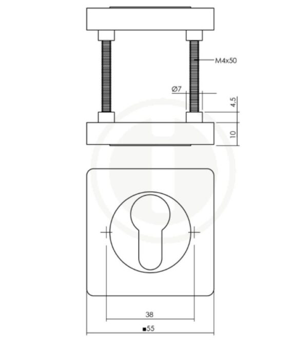 Deze verdekte vierkante rozet met profielcilindergat is gemaakt van zamak heeft een afmeting van 55x55x10 mm. Naderhand is de rozet voorzien van een hoogwaardige messingkleurige PVD coating wat een gouden uitstraling geeft. De rozet is voorzien nokken, waardoor hij beter op zijn plek wordt gehouden. Dit product wordt per paar geleverd inclusief bevestigingsmateriaal.