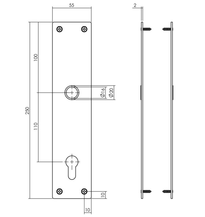 Schild met profielcilindergat. De hart op hart maat van het profielcilindergat tot de deurklink is 110 mm. materiaal rvs mat zwart.