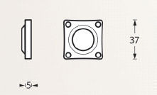 De maat van dit rozet is 37 mm vierkant. De dikte van dit rozet is 5 mm.