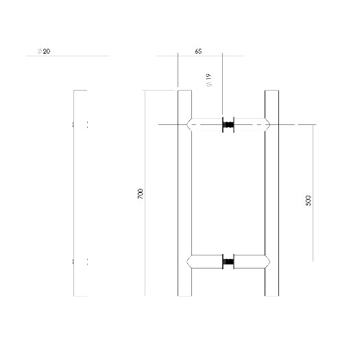 Intersteel Set Deurgrepen T-vorm 700x65x20 HoH 500 mm rvs