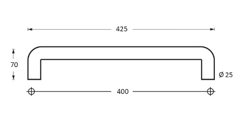 Intersteel set deurgrepen U-vorm 425x70x25 HoH 400 mm rvs
