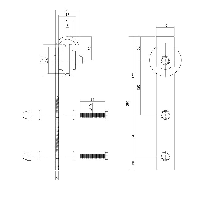 Intersteel set van 2 rollers tbv schuifdeursysteem, incl. bevestiging, mat zwart