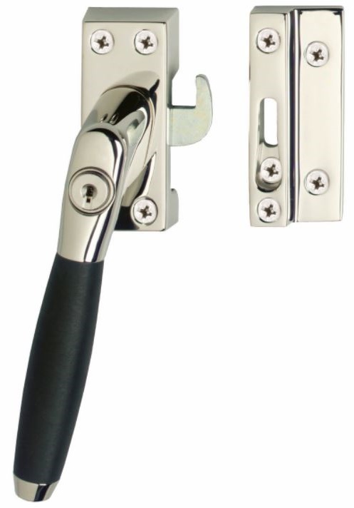 afsluitbare raamsluiting Ton 400 in een nikkel en ebbenhouten uitvoering. Door de gepolijste behandeling, heeft deze raamkruk een glanzend uiterlijk. Deze raamsluiting in een linker uitvoering is SKG1 gekeurd, dat wil zeggen dat het om inbraakwerend beslag gaat. Hiermee creëert u een veilig gevoel. Deze raamsluiting wordt per stuk geleverd inclusief rechthoekig rozet, sluitplaat en sleutel.