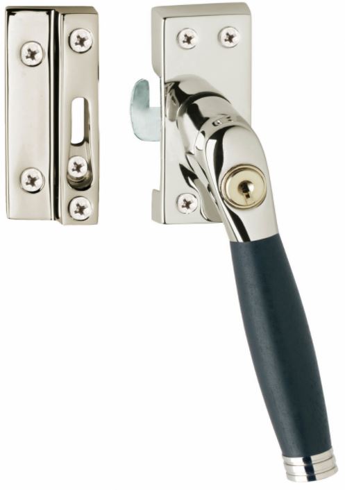 afsluitbare raamsluiting Ton 222 in een nikkel en ebbenhouten uitvoering. Door de gepolijste behandeling, heeft deze raamkruk een glanzend uiterlijk. Deze raamsluiting in een rechter uitvoering is SKG1 gekeurd, dat wil zeggen dat het om inbraakwerend beslag gaat. Hiermee creëert u een veilig gevoel. Deze raamsluiting wordt per stuk geleverd inclusief rechthoekig rozet, sluitplaat en sleutel.