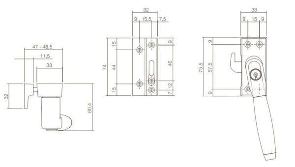 Intersteel SKG1 afsluitbare raamsluiting rechts Ton 400