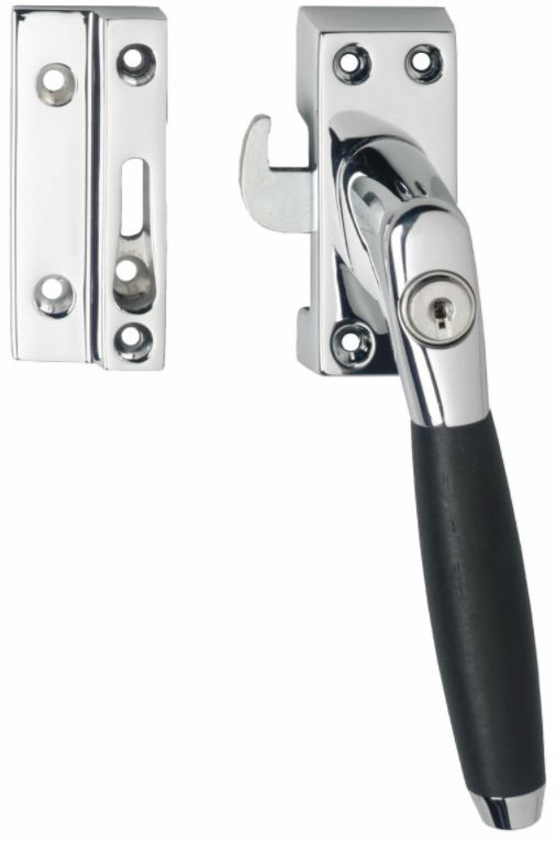 afsluitbare raamsluiting Ton 400 in een chromen en ebbenhouten uitvoering. Door de gepolijste behandeling, heeft deze raamkruk een glanzend uiterlijk. Deze raamsluiting in een rechter uitvoering is SKG1 gekeurd, dat wil zeggen dat het om inbraakwerend beslag gaat. Hiermee creëert u een veilig gevoel. Deze raamsluiting wordt per stuk geleverd inclusief rechthoekig rozet, sluitplaat en sleutel.
