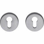 ronde set veiligheidsrozetten voor profielcilinder met SKG3 keurmerk in roestvast stalen uitvoering. Dit product wordt geproduceerd uit gehard staal met rvs cover en wordt daarna geborsteld waardoor het product zijn matte uitstraling krijgt. Het veiligheidsbeslag is SKG3 gekeurd, wat betekent dat het om extra zwaar inbraakwerend beslag gaat.