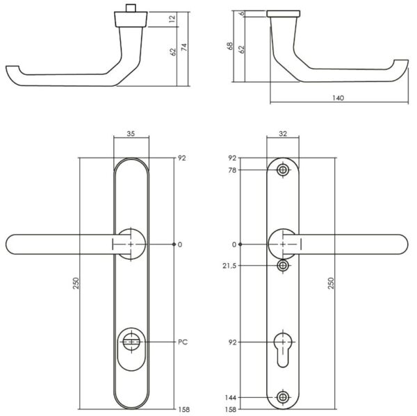 De h.o.h. maat van de deurklink tot het profielcilindergat is 92 mm.