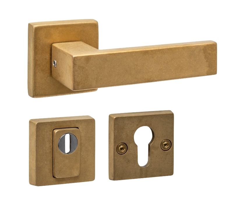 Achterdeurbeslag Amsterdam is gemonteerd op een massief vierkant rozet en heeft een getrommelde bewerking gehad. Daarnaast is het achterdeurbeslag afgewerkt met een messing kleurige PVD-coating. Dankzij de veer keert de kruk horizontaal terug. Het product wordt geleverd inclusief alle benodigde bevestigingsmaterialen. Geschikt voor een deurdikte van 38 – 56 mm.