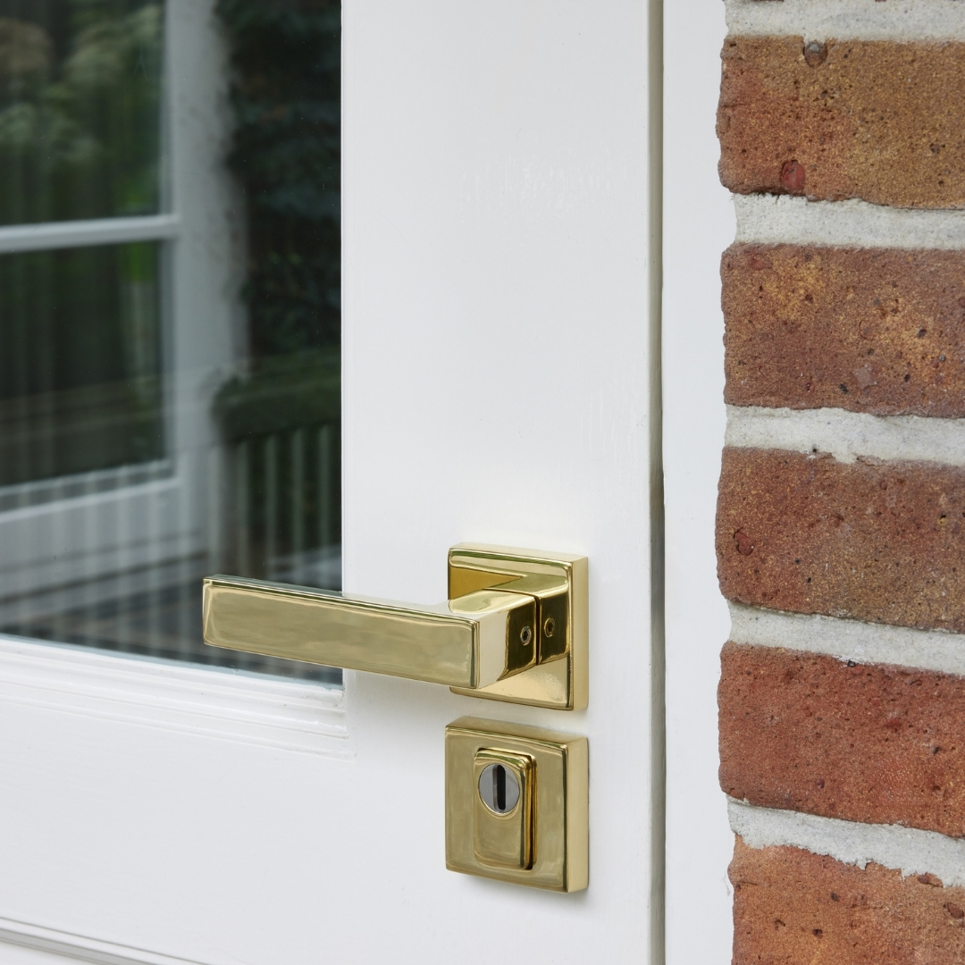 Achterdeurbeslag Amsterdam is gemonteerd op een massief vierkant rozet. Daarnaast is het achterdeurbeslag afgewerkt met een messing kleurige PVD-coating. Dankzij de veer keert de kruk horizontaal terug. Het product wordt geleverd inclusief alle benodigde bevestigingsmaterialen. Geschikt voor een deurdikte van 38 – 56 mm.
