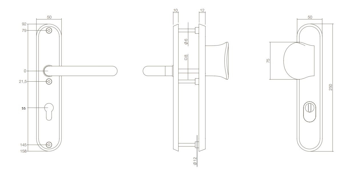 Met de profielcilindergat maat wordt de h.o.h. afstand tussen het profielcilindergat en de deurklink bedoelt. Dat is 55 mm. Geschikt voor een deurdikte van 38 – 58 mm. Uitsteekmaat profielcilinder is Min. 7.5mm – Max. 13mm.