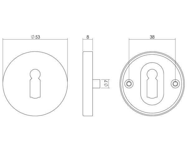 Deze ronde rozetten met sleutelgat zijn uitgevoerd in roestvast staal, door een geborstelde behandeling hebben deze rozetten een matte uitstraling. De maatvoering is Ø 53 mm en is voorzien van nokken. Deze rozetten worden per paar geleverd.