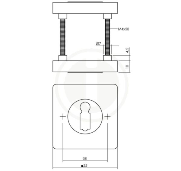 Deze verdekte vierkante rozet met sleutelgat is gemaakt van zamak heeft een afmeting van 55x55x10 mm. Naderhand is de rozet voorzien van een hoogwaardige messingkleurige PVD coating wat een gouden uitstraling geeft. De rozet is voorzien nokken, waardoor hij beter op zijn plek wordt gehouden. Dit product wordt per paar geleverd inclusief bevestigingsmateriaal.