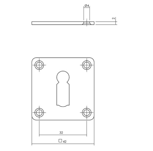 Intersteel sleutelrozetten 42x42x2mm rvs