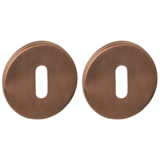 Het ronde sleutelrozet is vervaardigd uit roestvast staal met een bronzen PVD-coating, wat een warme uitstraling aan elk interieur geeft. Dit verdekte sleutelrozet wordt per set geleverd, inclusief bevestigingsmateriaal.
