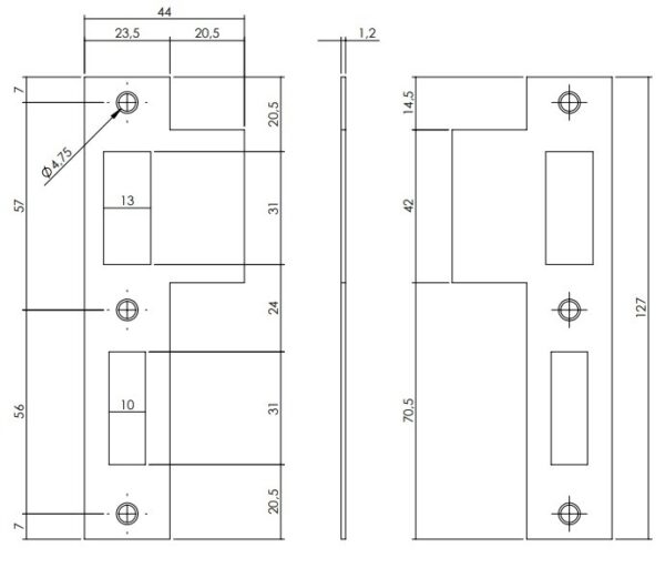 Intersteel Sluitplaat voor dag- en nachtschoot tbv woningbouwsloten rechthoekig met korte lip rvs
