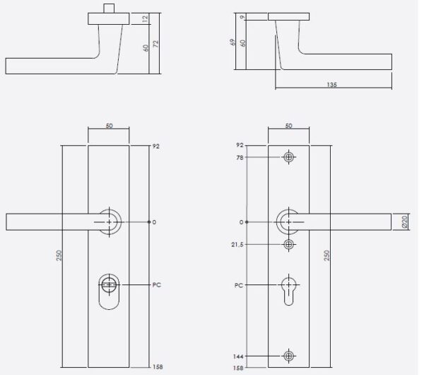 Deze rechthoekige set voordeurbeslag Jura bestaat uit aluminium en is hierdoor licht van gewicht en sterk tegelijk. Het veiligheidsbeslag is voorzien van een zwarte coating. Het product is SKG3 gekeurd, wat betekent dat het om zwaar inbraakwerend beslag gaat. Daarnaast is het voorzien van kerntrekbeveiliging, waardoor de cilinder wordt bescherm tegen het uittrekken en uitboren van de cilinderkern. Deze set is voorzien van zowel een kruk aan de buitenzijde als een kruk aan de binnenzijde en is zowel links als rechts toepasbaar. Het veiligheidsbeslag is geveerd en heeft een profielcilindergat maat van 55 mm.