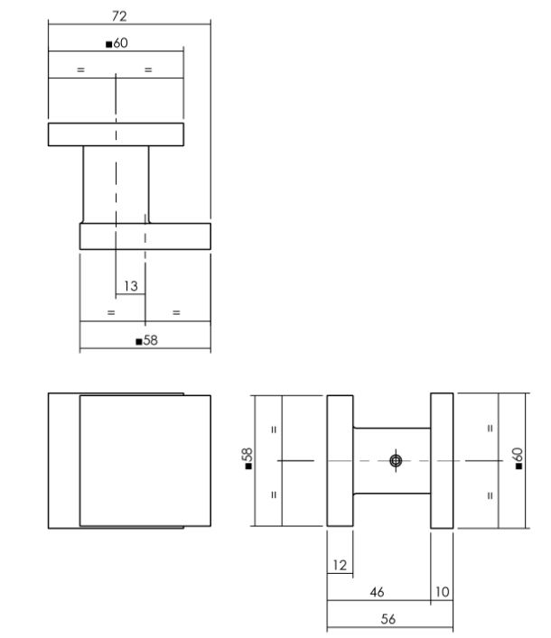 Deze vierkante voordeurknop bestaat uit aluminium en is hierdoor licht van gewicht en sterk tegelijk. De knop is vervolgens voorzien van een zwarte coating. De knop heeft een afmeting van 58 x 58 mm en de achterplaat is 60 x 60 mm. Montage is éénzijdig en eenvoudig met het bijgeleverde bevestigingsmateriaal.