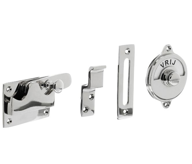 Een wc-overslag zorgt ervoor dat u een deur gemakkelijk kunt openen en afsluiten. Deze wc-overslag is uitgevoerd in chroom en naderhand gepolijst, waardoor het een glanzende uitstraling krijgt. Daarnaast is deze toiletsluiting voorzien van emaille plaatje met de tekst vrij / bezet. Deze wc-overslag vlak is geschikt voor naar binnendraaiende toilet-/badkamerdeuren en is zowel links als rechts op de deur te plaatsen. Tevens is deze wc-overslag voorzien van schroefgaten en wordt geleverd inclusief sluithaak en sluitplaat, zodat u zelf de keuze kunt maken of u de sluiting op of in het kozijn wilt monteren. Tot slot bevat deze set bevestigingsmateriaal voor montage.