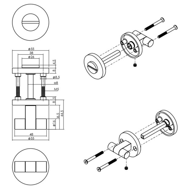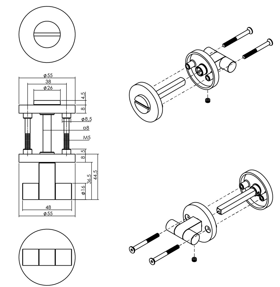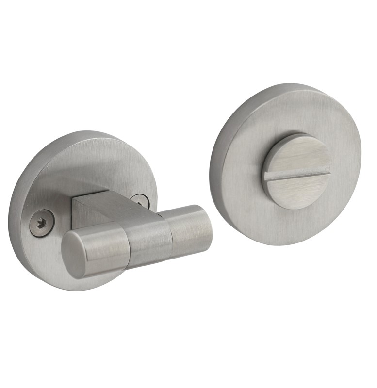 Deze toilet-/badkamersluiting met bediening links is speciaal ontworpen om te combineren met deurklink Shiraat, winnaar van de Red Dot Design Award 2022. De rozet is vervaardigd uit geborsteld roestvast staal. Omdat de geborstelde structuur behouden blijft heeft de wc-sluiting een matte uitstraling. De rozet heeft een afmeting van ø55×8 mm en is éénzijdig verdekt. Dit betekent dat maar één kant van de deur zichtbare schroefgaten heeft. Dit product wordt per set geleverd inclusief bevestigingsmateriaal voor montage.