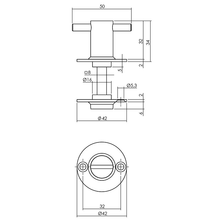 Intersteel wc-sluiting 8 mm T-vorm plat 42 mm rvs
