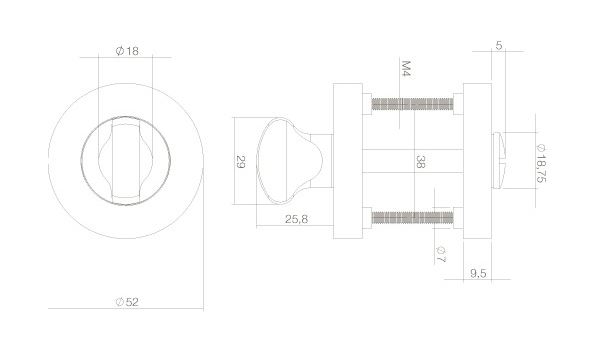 Intersteel wc-sluiting 8mm rond 53x8mm met 7mm nokken mat zwart
