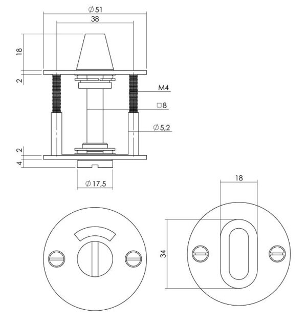 Intersteel wc-sluiting 8mm rond plat 50x2mm rvs