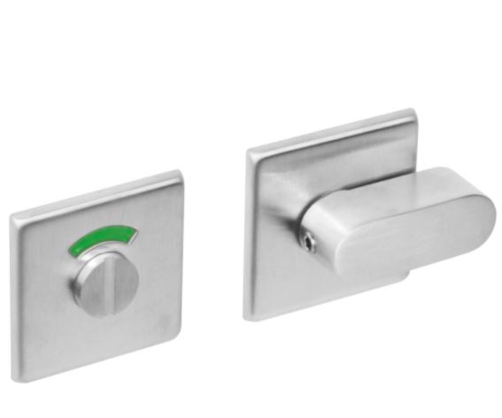Een toilet-/badkamersluiting zorgt ervoor dat u een deur gemakkelijk kunt openen en afsluiten. Deze toilet-/badkamersluiting is geproduceerd uit massief roestvast staal en is daarna geborsteld, zodat het een matte uitstraling krijgt. Door het gebruik van massief rvs heeft dit product een lange levensduur. Deze vierkante toilet-/badkamersluiting is voorzien van een rood/groen venster. Deze sluiting wordt per paar geleverd inclusief bevestigingsmateriaal.