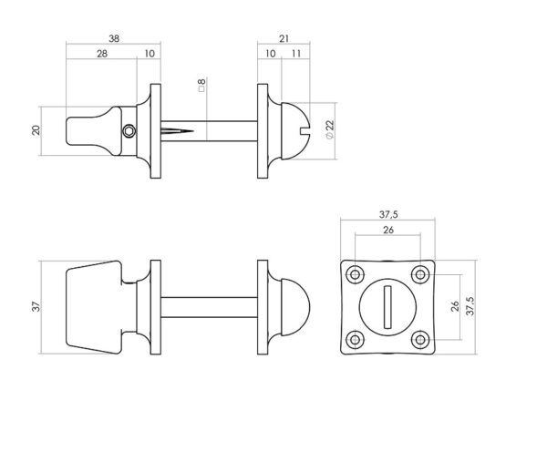 Een toilet-/badkamersluiting zorgt ervoor dat u een deur gemakkelijk kunt openen en afsluiten. Deze nikkel toilet-/badkamersluiting is naderhand geborsteld, zodat het een matte uitstraling krijgt. Deze vierkante toilet-/badkamersluiting is voorzien van schroefgaten en wordt per paar geleverd.