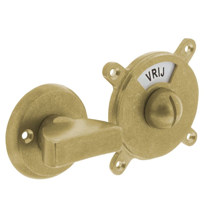 Intersteel komt met een nieuwe toilet-/badkamersluiting met een jaren 30 design. Deze opschroevende sluiting is uitgevoerd in messing en naderhand getrommeld, waardoor hij een donkere en doffe uitstraling krijgt. De wc-sluiting is voorzien van een wit emaillen plaatje met de tekst ‘vrij’ en ‘bezet’. Het grote voordeel van deze toilet-/badkamersluiting is de grote knop aan de binnenzijde van de deur, waardoor de deur eenvoudig kunt openen en afsluiten. Bij een onverhoopte insluiting, kunt u tevens de wc-sluiting ontgrendelen door middel van een schroevendraaier. Hij is zowel rechts als links op de deur te plaatsen en wordt geleverd inclusief bevestigingsmateriaal voor montage.