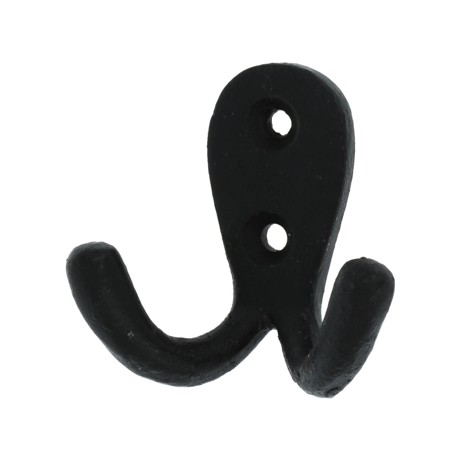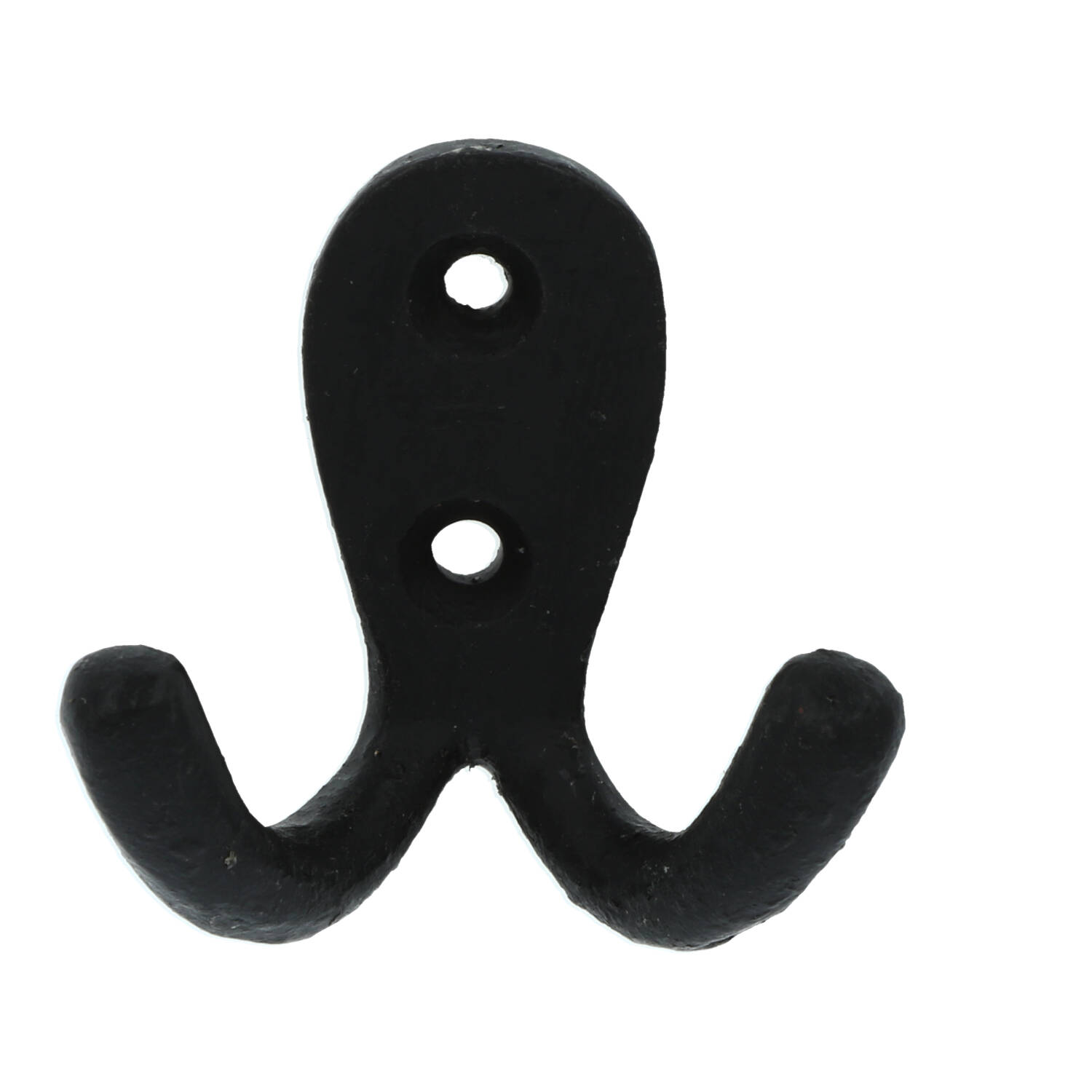 Kapstokhaak klein dubbel ijzer zwart waxlaag