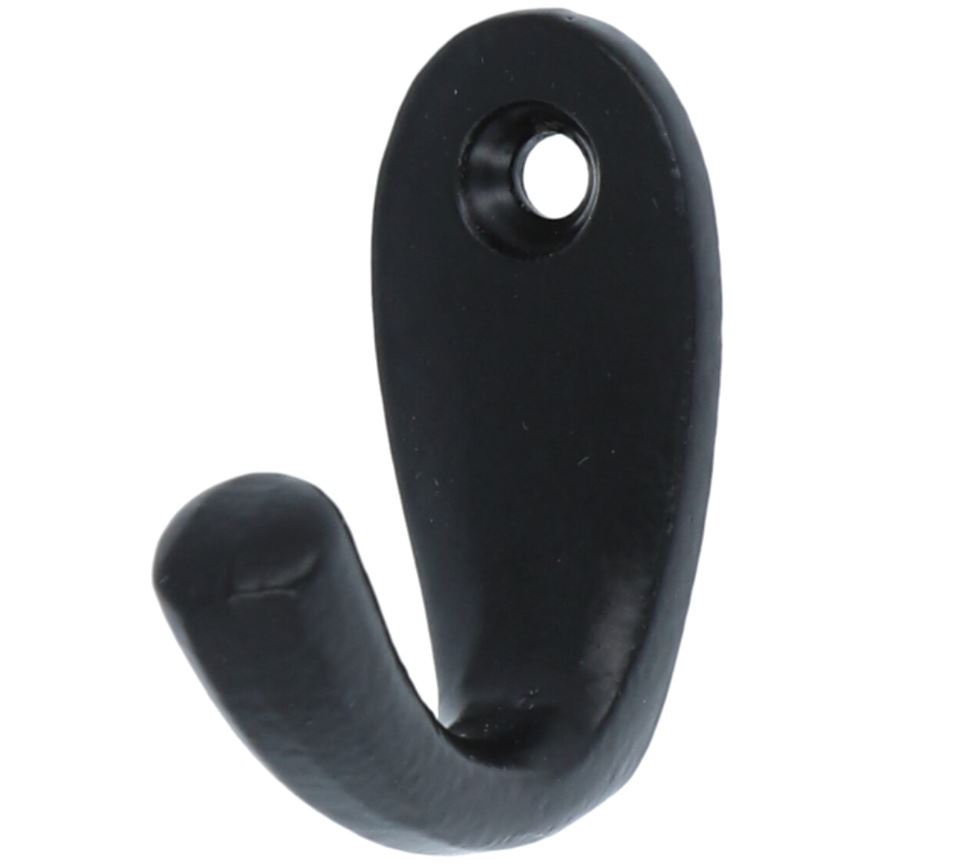 Dit kapstokhaakje heeft een hoogte van 42 mm en komt 37 mm naar voren.De kapstokhaak wordt bevestigd met 1 meegeleverde zwarte schroef. De bevestigingsplaat van de kapstok is 18 mm breed en 40 mm hoog. Materiaal ijzer. De kleur van deze kapstokhaak is zwart.
