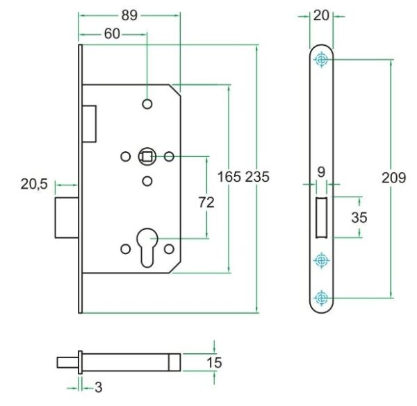 - Afmetingen conform DIN 18251 (is standaardmaat voor projectsloten in Nederland & België)