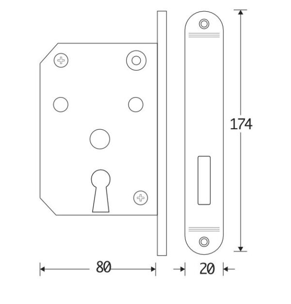 - Afmeting voorplaat: 174 x 3 x 20 mm