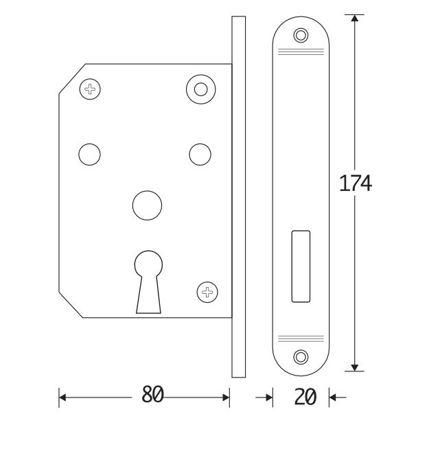 - Afmeting slotkast: 116,5 x 80,3 x 17 mm