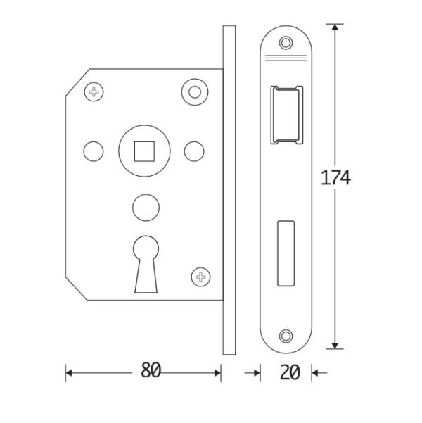 - Afmeting slotkast: 116,5 x 80,3 x 17 mm