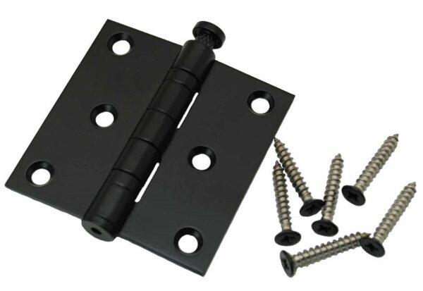 Dit Kogellagerscharnier is vervaardigd uit roestvast staal en is naderhand van een zwarte finish voorzien. Door het gebruik van massief rvs heeft dit product een lange levensduur. Dit scharnier met rechte hoeken is toe te passen op zowel naar rechts als links draaiende deuren, doordat u de stift en de einddop kunt demonteren. Het Kogellagerscharnier is 76 mm hoog, uitgeklapt 76 mm breed en heeft 2,5 mm dikke bledden. Dit scharnier is geschikt voor deuren met een gewicht tot 50 kilo.