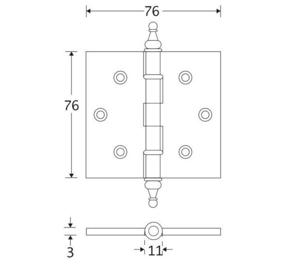 Kogellagerscharnier 76×76 rechte hoek vaas messing ongelakt