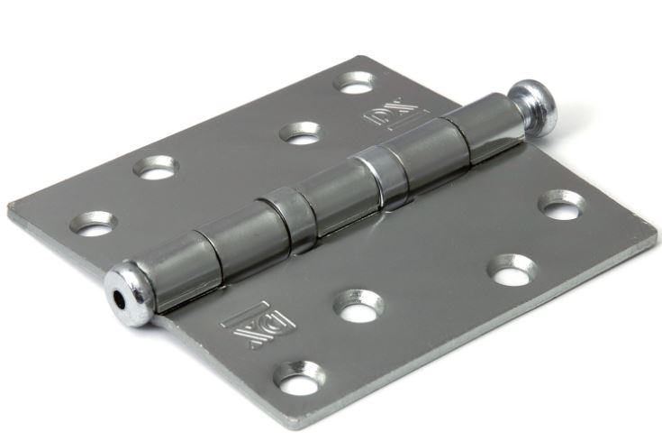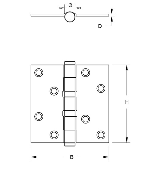 Dit kogellagerscharnier heeft rechte hoeken. De maat van dit scharnier is 89 x 89 mm. Het materiaal is staal verzinkt met losse verzinkte pen.