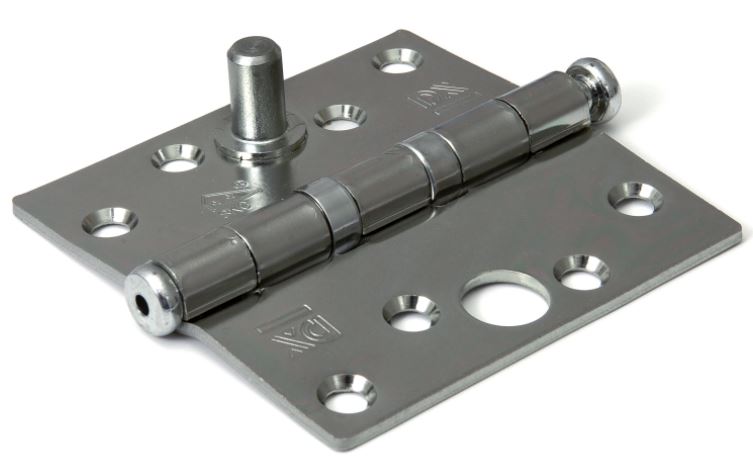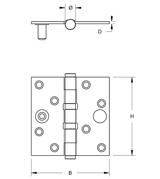 Dit kogellagerscharnier heeft rechte hoeken. De maat van dit scharnier is 89 x 89 mm. Het materiaal is staal verzinkt.