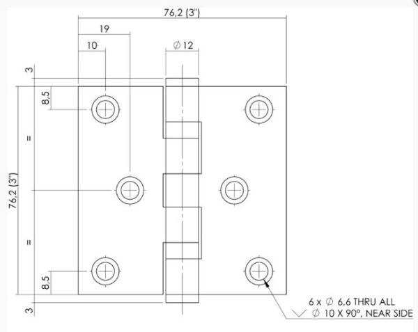 Kogellagerscharnier Recht 76x76x2,5 rvs